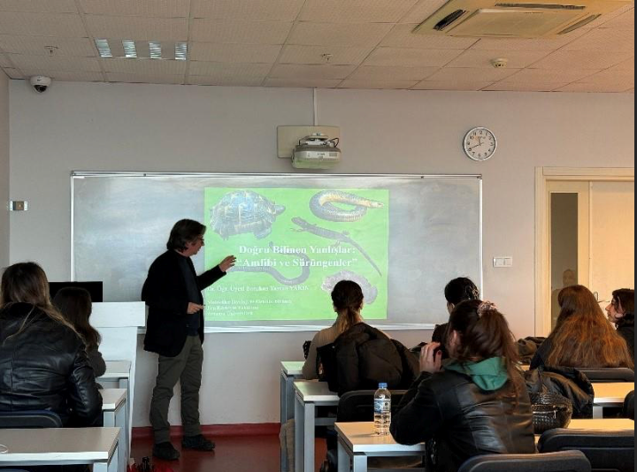 16 Aralık 2025 tarihinde Dr. Öğr. Üyesi Batuhan Yaman YAKIN tarafından ‘Doğru Bildiğimiz Yanlışlar: Amfibi ve Sürüngenler’ isimli seminer gerçekleştirildi.