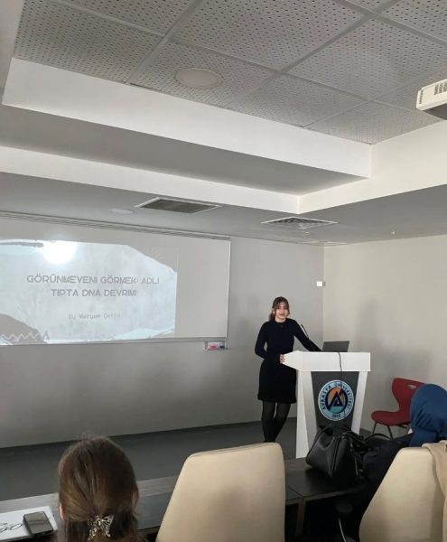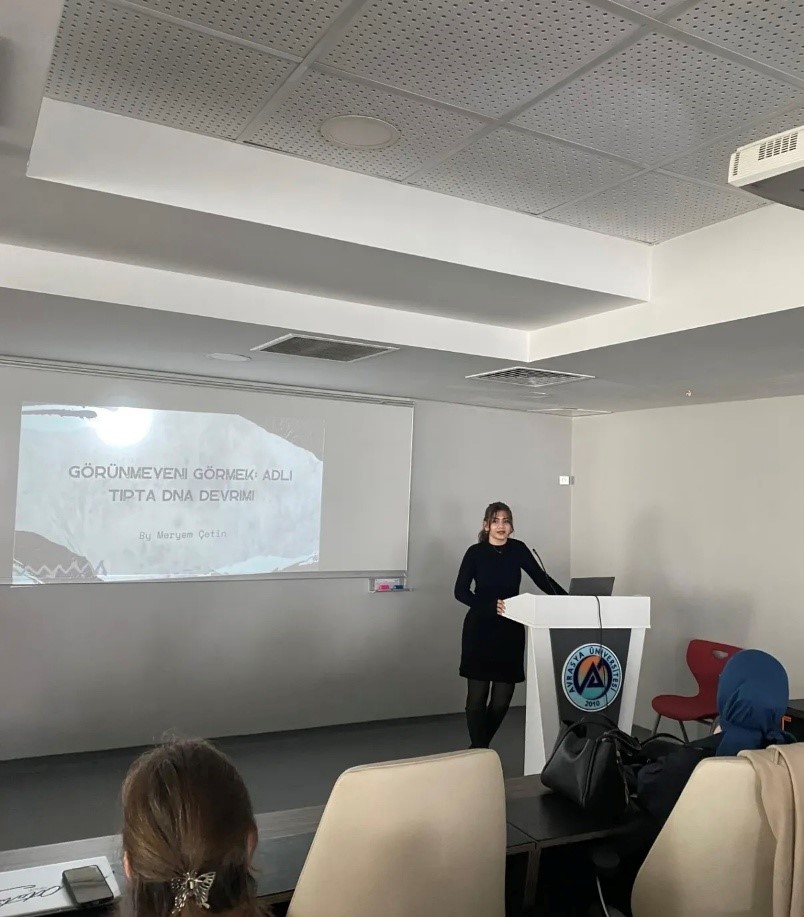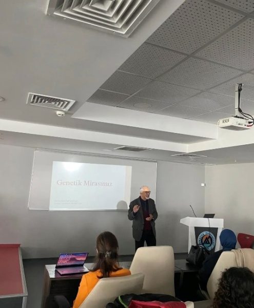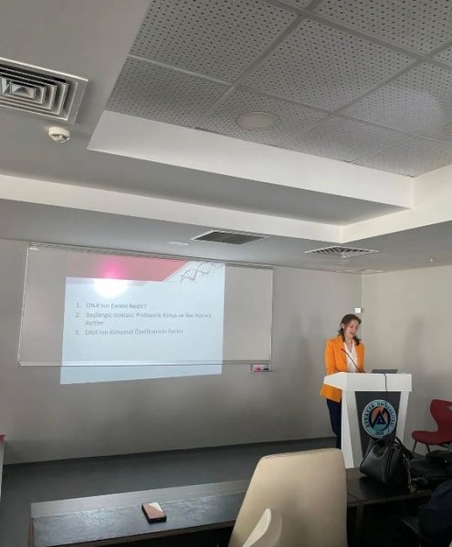 25 Nisan 2025 DNA Günü’nde Prof Dr. Fikret Nafi ÇOKSÖYLER, Dr. Öğr. Üyesi Handan ÜSTÜKARCI, Dr. Öğr. Üyesi Deniz UĞUR ve Moleküler Biyoloji ve Genetik öğrencileri tarafından konferans gerçekleştirildi.